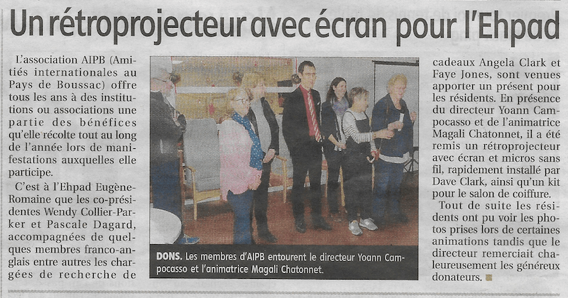 Following our fund raising events in 2018, we were able to make a further two donations this week to our local community in Boussac.
