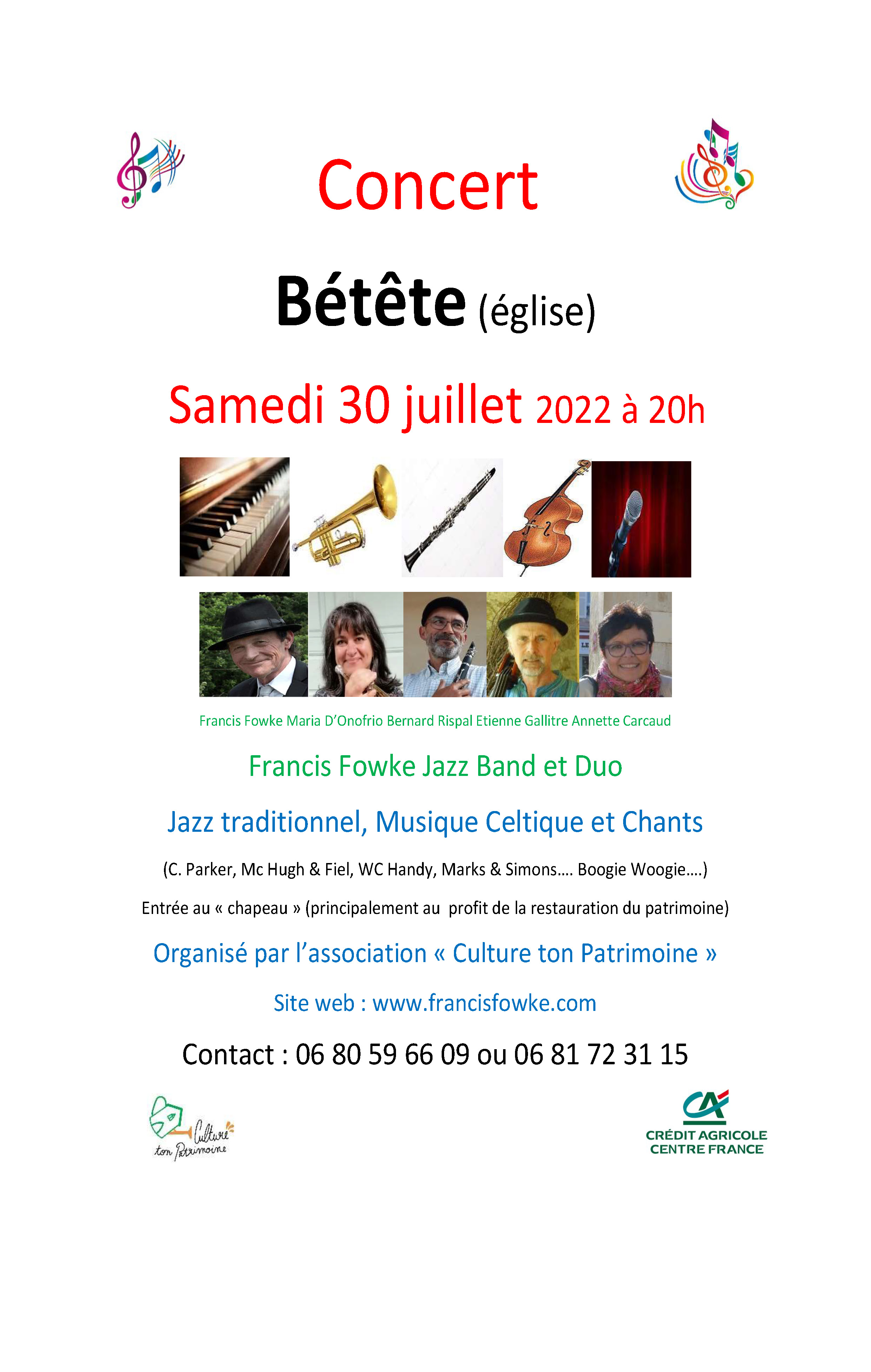 Francis Fowke Maria D’Onofrio Bernard Rispal Etienne Gallitre Annette Carcaud Francis Fowke Jazz Band et Duo