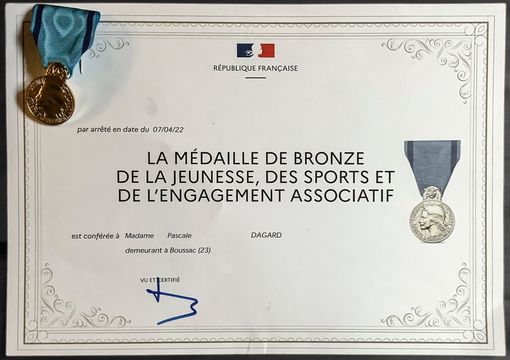 On December 5th 2022 in GUERET, our very own Pascale DAGARD (Co-President AIPB), was awarded the ministerial Bronze medal for Associative Commitment for the immense work she does and has been doing for many years with various associations in Boussac, including AIPB.