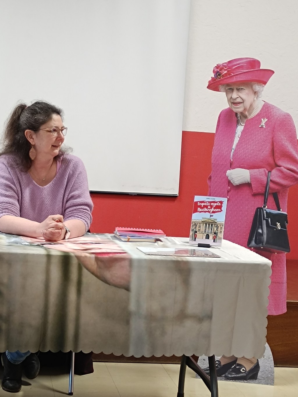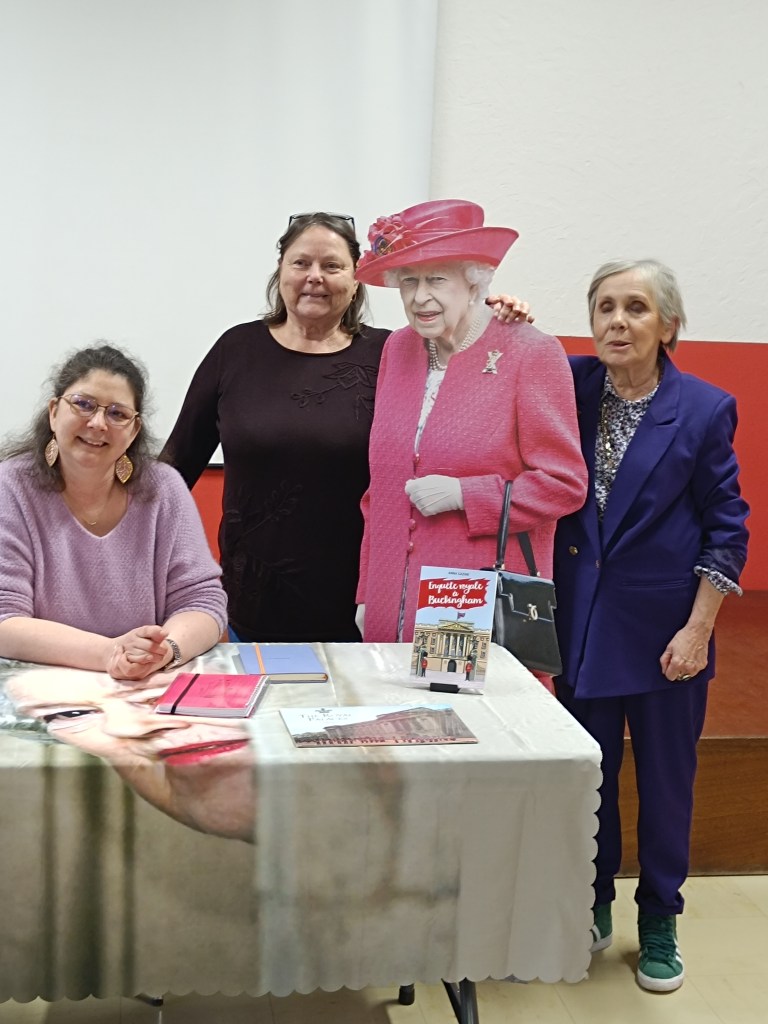 Photos de la Présentation du roman policier ENQUETE ROYALE à BUCKINGHAM PAR l’autrice Creusoise ANNA CAZINE au café franglais d’AIPB à Boussac
