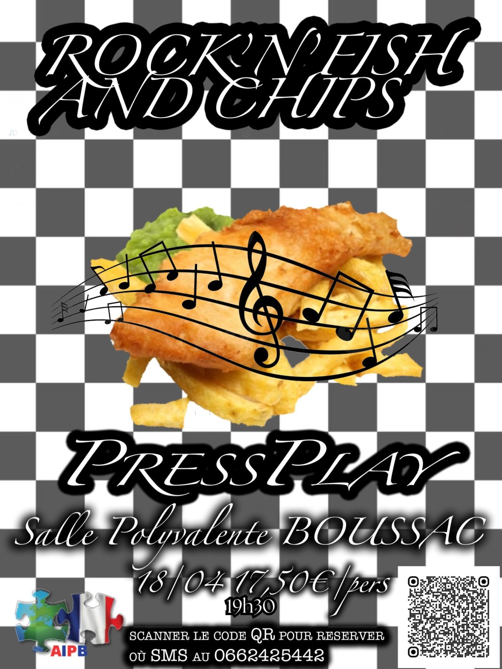 Préparez-vous à passer une superbe soirée en musique, à danser et à déguster du fish and chips ! Nous avons hâte de vous accueillir à notre événement annuel. Le groupe PressPlay sera là pour nous divertir. Vous pouvez réserver en scannant le code QR sur l’affiche, en cliquant sur le lien ci-dessous ou par SMS uniquement au 0662425442. Réservez avant le 11 avril : cet événement affiche toujours complet !